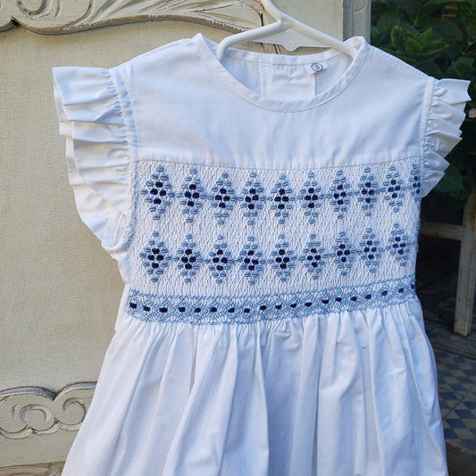 Vestido Lino Blanco Mantequilla Lazo Blanco