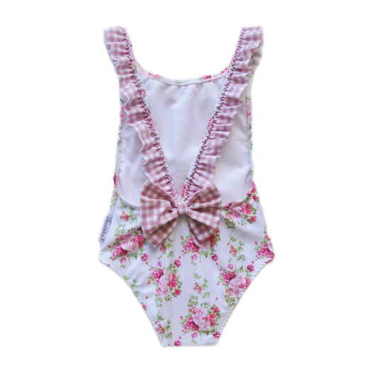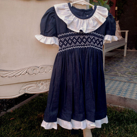 Vestido Lino Blanco Lazo Palo Rosa Manga Larga